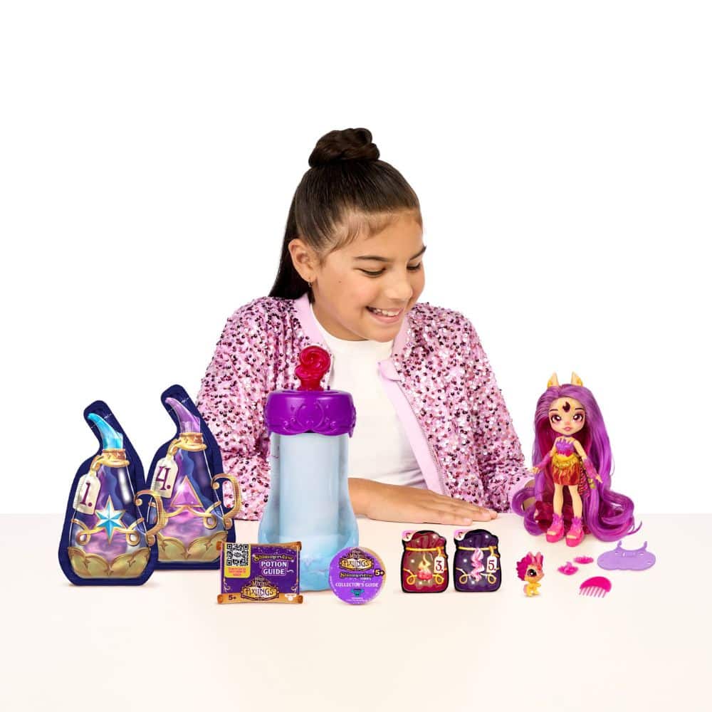 Magic Mixies Deluxe Pixlings nukke. Sekoita maagiset kimallusaineet ja paljasta kaunis Pixling-nukke Pippa Tulihevonen. Mukana on myös hänen Mini Mixie-ystävänsä.