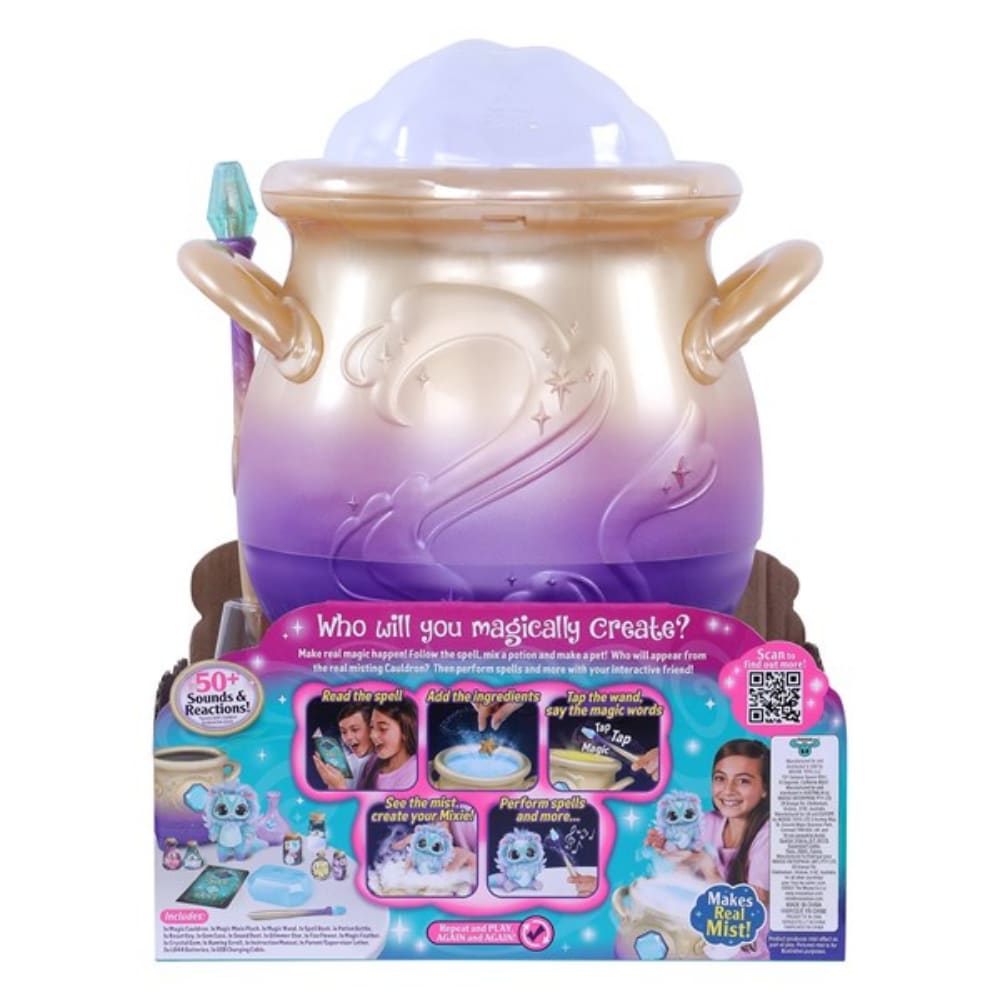 Kenet luot maagisesti kattilassa? Luo maaginen Magic Mixies-lemmikki sekoittamalla ainekset, lukemalla loitsuja ja lyömällä sauvoilla. Muodostuvasta maagisesta sumusta nousee pörröinen Mixie! Sekoituksesta tulee ääniä ja se loistaa. Pehmolelu reagoi, kun taputtelet sitä tai kosketat sen otsaa sauvalla. Lelusta tulee yli 50 ääntä ja reaktiota. Voit laittaa lemmikin takaisin kattilaan ja loihtia sen uudestaan ja uudestaan. Voit myös laittaa omat yllätyksesi pataan, jonka loihdit. Voit leikkiä sumun kanssa tai ilman.