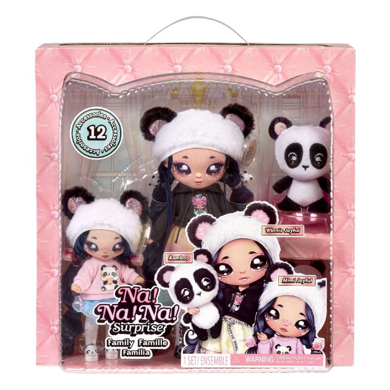 Kerää koko suloinen Na! Na! Na! panda-perhe. Panda perheeseeen kuuluu Winnie Joyful-nukke, hänen pikkusiskonsa ja heidän pehmeä lemmikkipandansa Bamboo! Nukkien raajat liikkuvat. Nukeilla on maahan asti ulottuvat pitkät mustat hiukset. Heillä on yllään muodikkaat vaatteet, jaloissaan bandakengät ja päässään panda teemaiset hatut. Upeassa pakkauksessa on yhteensä 12 osaa.