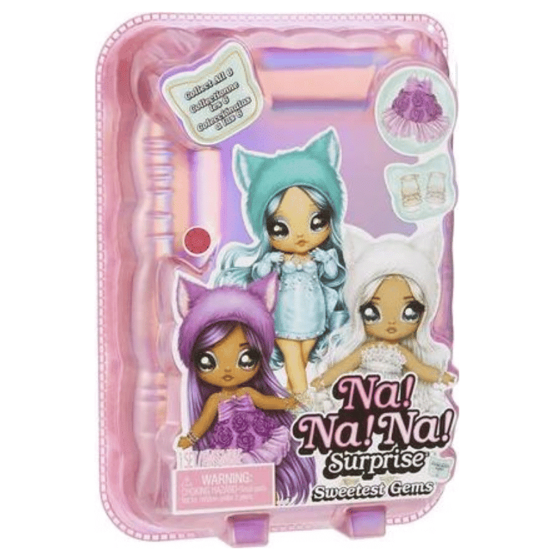 Näytä rakkautesi tällä upouudella Na Na Na Surprise Sweetest Gems™ -muotinukella. Arvokkaat ja erittäin lumoavat, syntymäkivistä inspiroidut Sweetest Gems™-nuket ovat täydellinen lahja suuriin ja pieniin juhliin. Saat erittäin pehmeän muotinuken muodikkailla vaatteilla ja harjan. Jokaisella nukella on kaunis mekko, kengät ja pörröinen kissan inspiroima pipo. Pipo ei ole irrotettava. Na Na Na Surprise-nuket ovat pehmeitä muotinukkeja, joilla on hieno asu, painetut kasvot ja painettu muotiyksityiskohta. Katso minkä hahmon saat, kun purat pakkauksen! Valentina Lovely sisältää etiketin, jossa on hänen nimensä, syntymäpäivä ja tarina hänestä. Kerää kaikki kuusi nukkea!