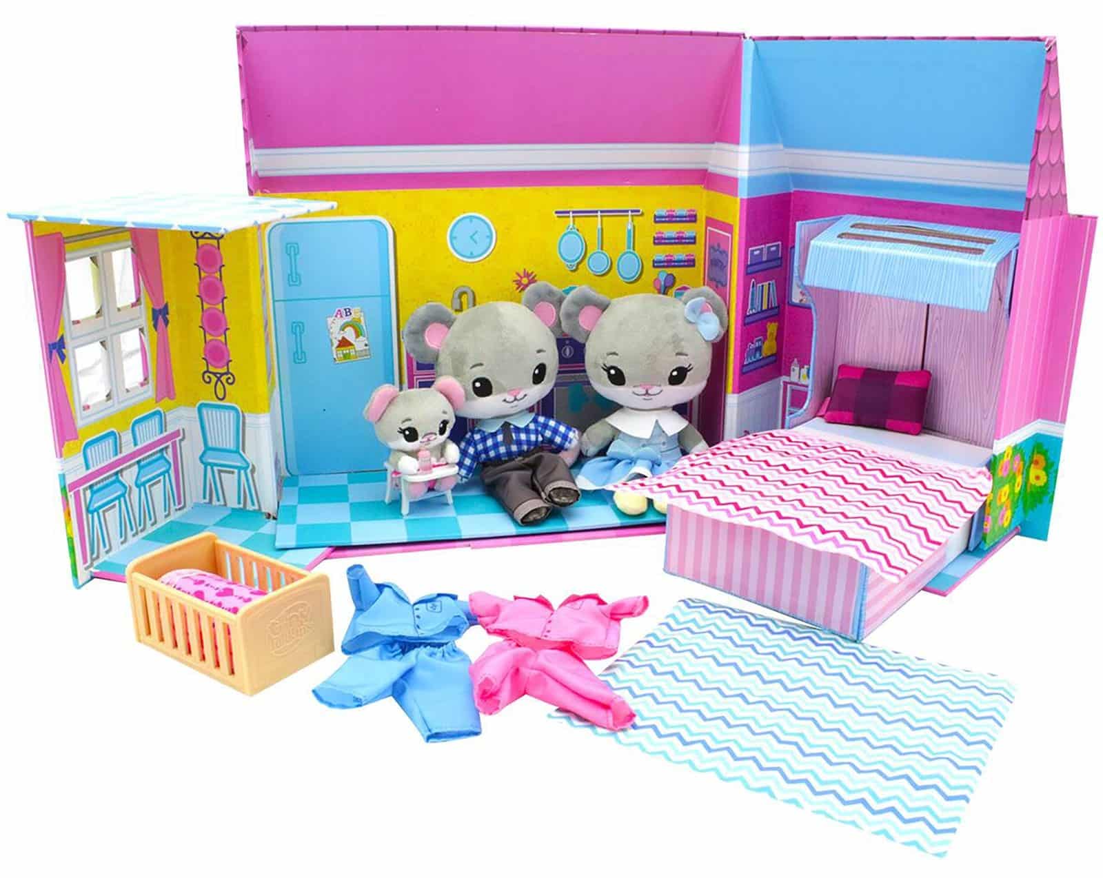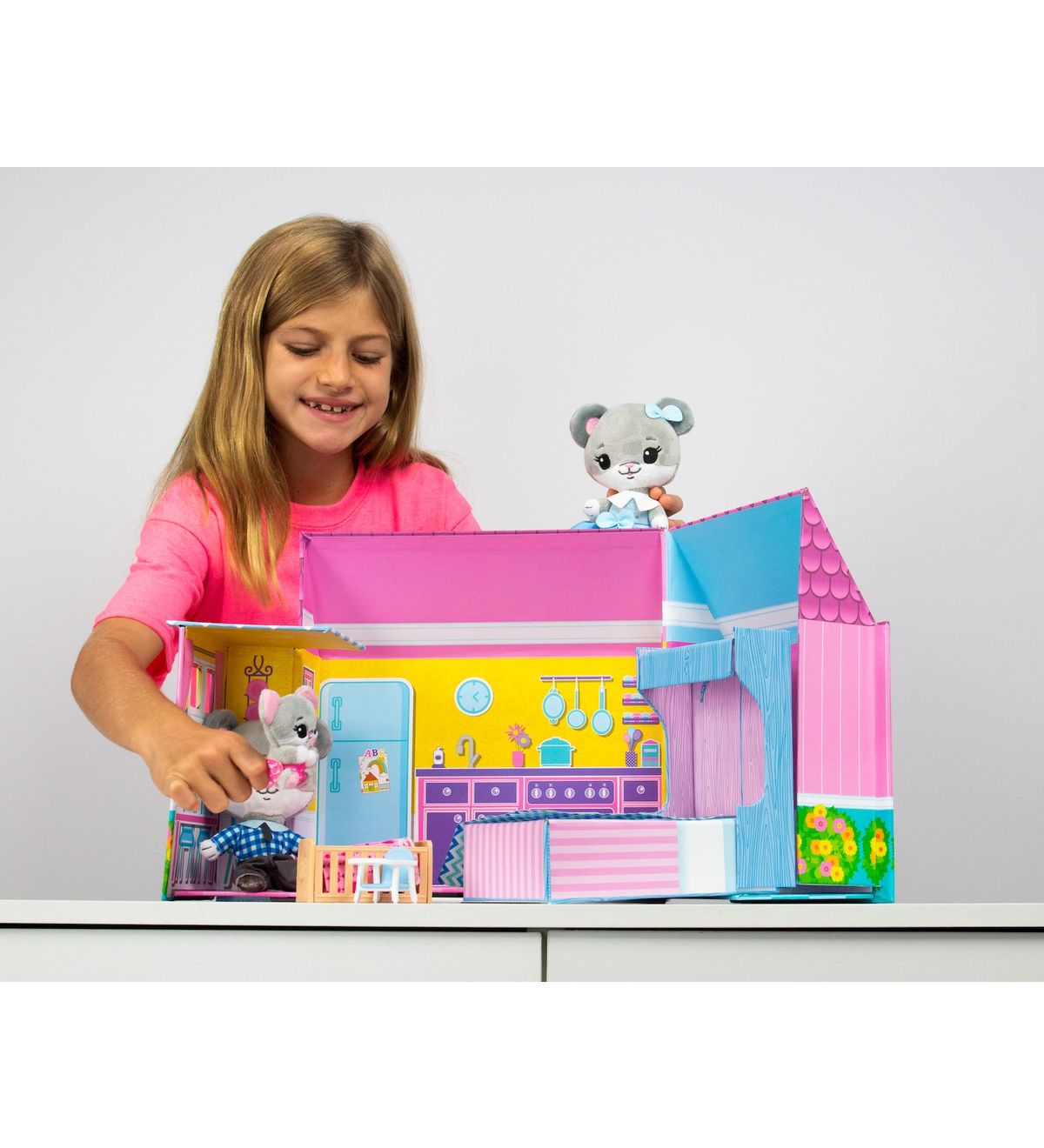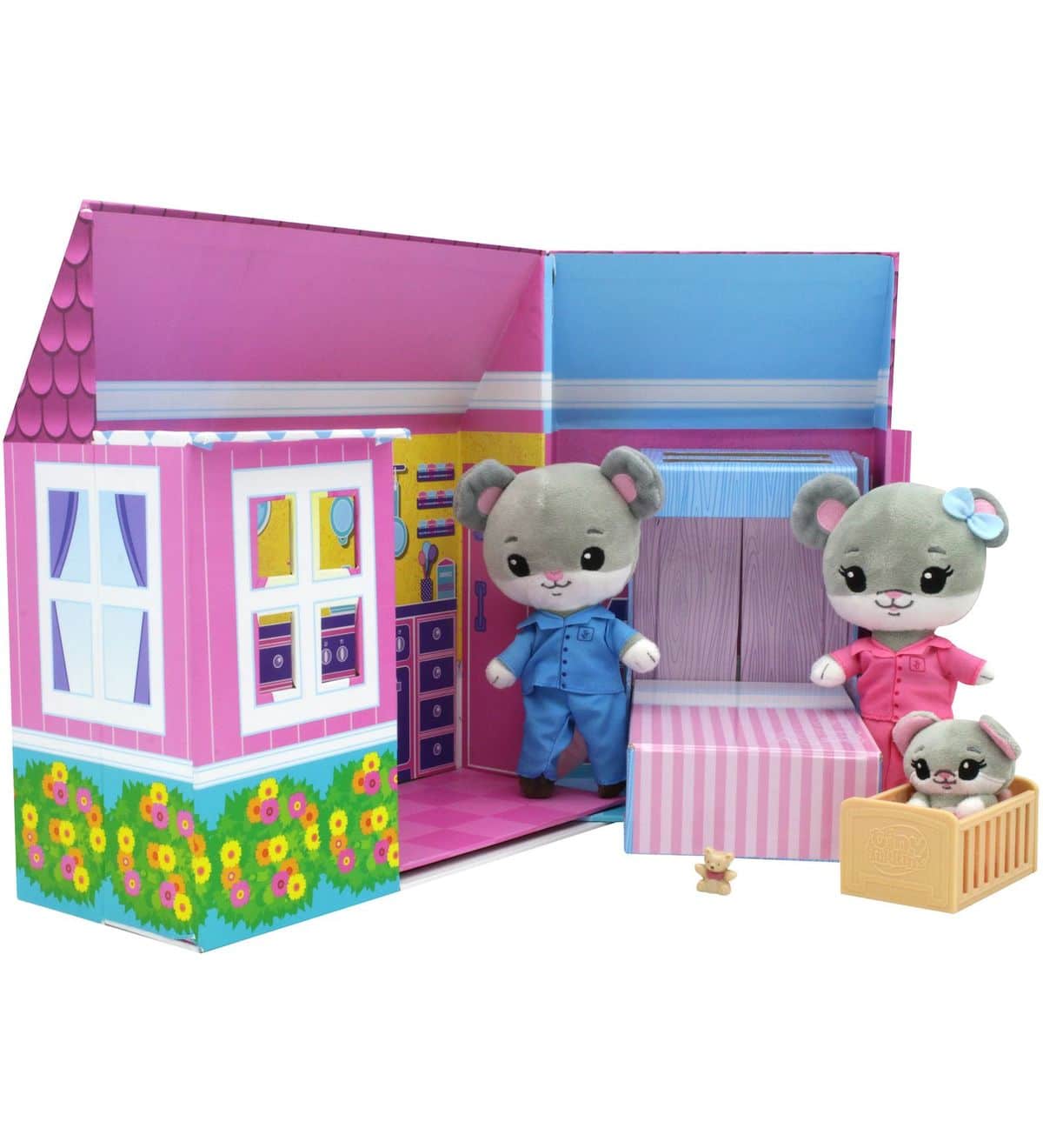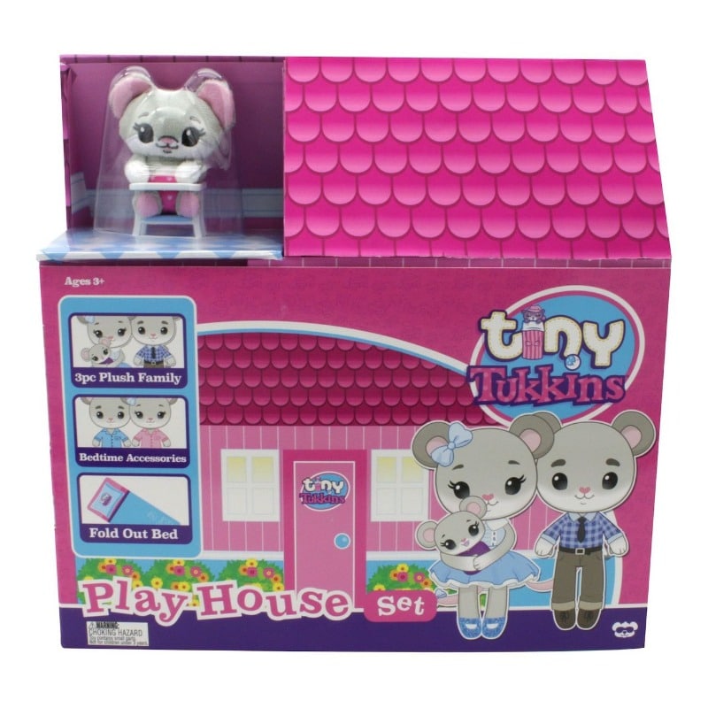 Suloisen pehmoiset Tiny Tukkinsit valloittavat sydämiä! Herttaisessa Tiny Tukkins Play House -talolla voit leikkiä kätevästi missä vain. Pakkaus avautuu hauskasti perheen kotitaloksi. Setti sisältää äidin, isän pienen Tiny-vauvan, sängyn, kaapin sekä erilaisia tarvikkeita.