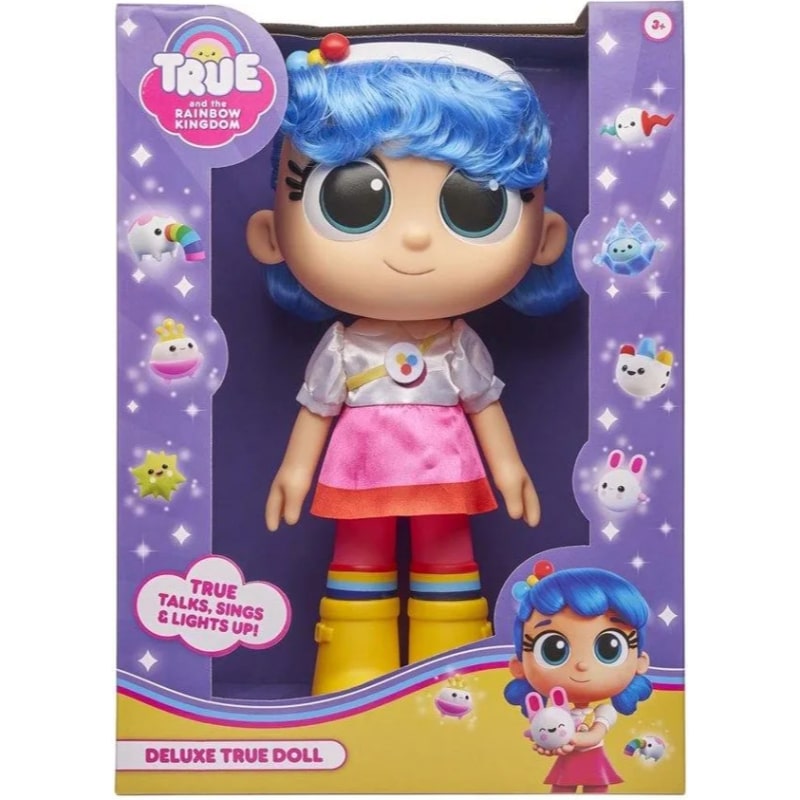 Animoidusta Netflixin hittisarjasta Tuire ja Sateenkaarimaa on nyt saapunut noin 30 cm korkea Tuire-nukke! Nukke puhuu, siihen syttyy valo ja siitä kuuluu musiikkia, kun painat sitä mahasta. Pikkuisesi rakastaa käpertyä Tuire-nuken viereen nukkumaanmenoaikaan. Tällä maagisella Tuire-nukella on siniset hiukset, panta päässään ja samanlainen asu kuin sarjassa.