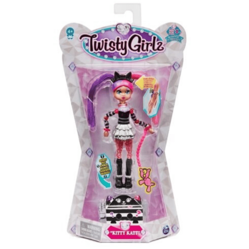Pakkaus sisältää Twisty Girls -hahmon, yllätyslemmikin ja hihnan jolla kiinnittää Twisty Girls -hahmo ja lemmikki toisiinsa.