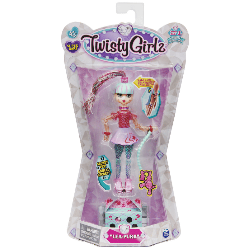 Twisty Petzien uusi muoto! Tällä kertaa lemmikin sijaan muutetaan tyttö rannekoruksi. Jokaisella Twisty Girlsillä on tyylikäs asu ja kampaus. Mukana myös yllätyslemmikki! Yllätyslemmikki voi olla vaikkapa yksisarvinen, norsu, kissanpentu ja paljon muuta. Tämä yllätyslemmikki on mahdollista muuttaa blingiseksi renkaaksi.