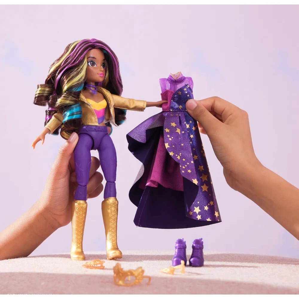 - Juhli kohtalokeijujen taikaa Yksisarvisakatemian naamiaisjuhlassa Sophia Masquerade-nuken kanssa. Yhdeksällä liikkuvalla nivelillä ja autenttisilla yksityiskohdilla sarjasta Sophia on ratsastusvaatteissaan, valmiina seikkailuihin. Kun on aika tanssiaisiin, voit vaihtaa Sophian irrotettavasta takista, kaulakorusta ja saappaista hänen tähtikuvioiseen mekkoonsa, vyöhönsä, naamioonsa ja violetteihin saappaisiinsa. Hä