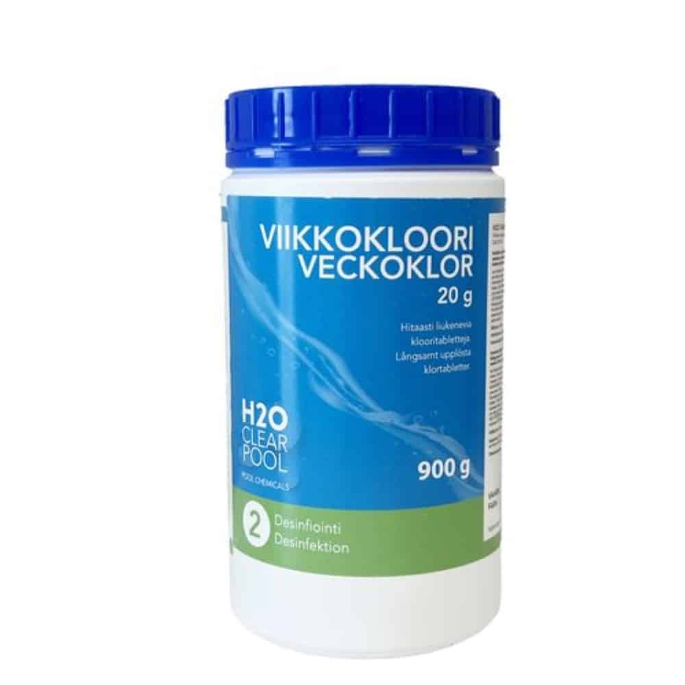 Ylläpidä veden puhtautta käyttämällä hitaasti liukenevia klooritabletteja. Aseta 20 g tabletti kemikaaliannostelijaan. Pakkaus 0,9 kg.