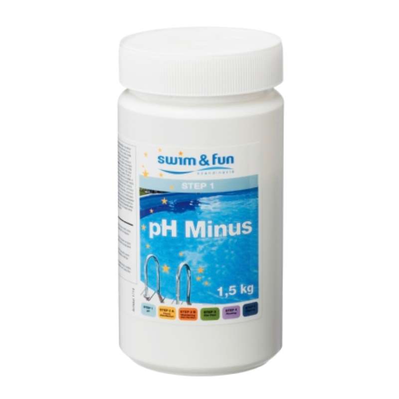 - pH Minus säätää altaan pH-arvoa. pH Minus käyttö mikäli pH arvo on liian korkea. Allasveden pH- arvon tarkistus tehdään säännöllisesti. Suositeltavin arvo on 7,0 – 7,4 välillä jolloin saadaan paras tulos kun käytetään allaskemikaaleja.