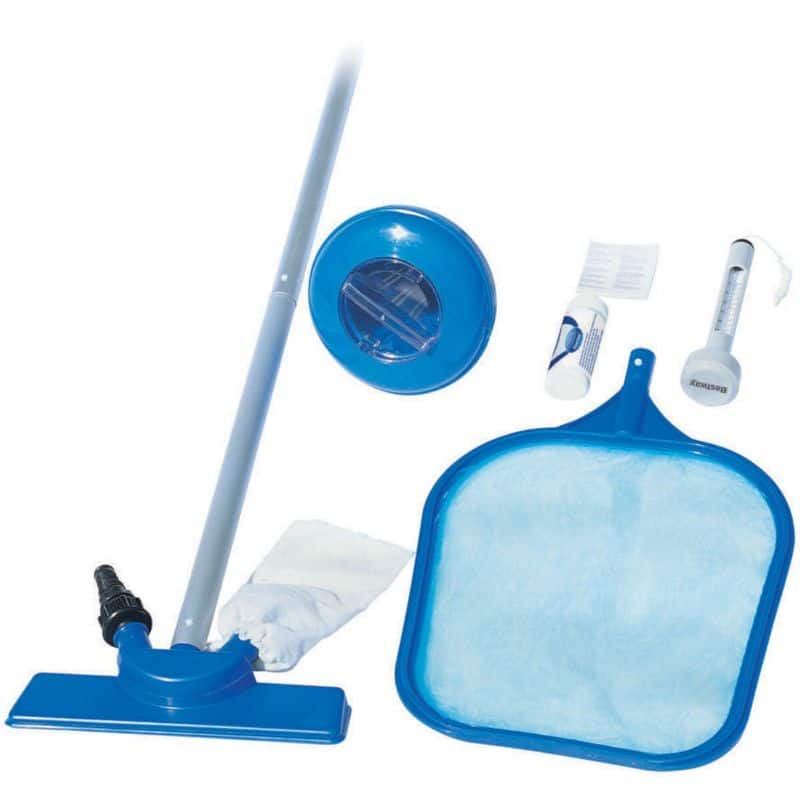 - Bestway uima-altaan puhdistussettiin kuuluu kaikki, mitä tarvitset uima-altaasi puhdistamiseen. Puhdistustarvikesetin avulla pidät uima-altaan hyvässä ja siistissä kunnossa, ja voit huoletta antaa lasten leikkiä altaassa!