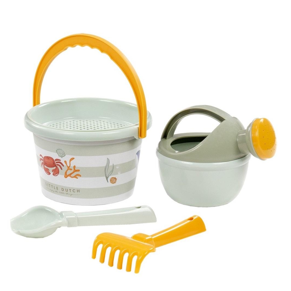 Tämä rantalelusetti on täydellinen kumppani loputtomiin rantaleikkeihin. Raikkaan vihreän värinsä ja lumoavan muotoilunsa ansiosta tämä rantasetti herättää naperon mielikuvituksen. Setti sisältää lapion, haravan ja muotin. Anna lapsesi rakentaa kauneimpia hiekkalinnoja, löytää aarteita ja luoda mielikuvituksellisia muotoja Little Dutch Beach Set Fresh Greens -setin parissa.