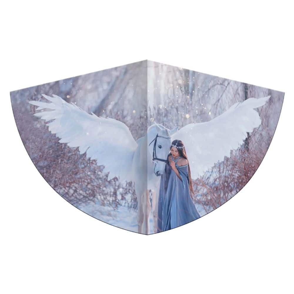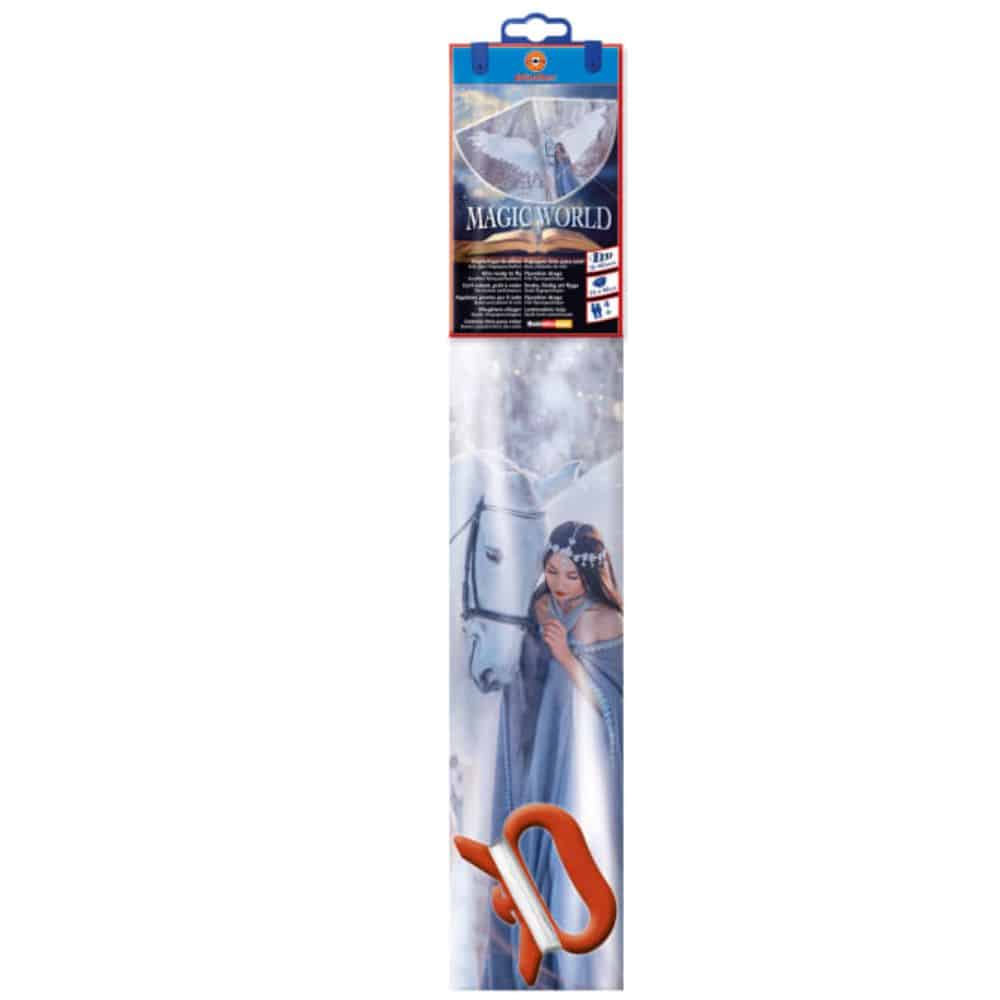 Uutuusleija, jonka kuva-aiheena valkoinen Pegasus ja prinsessa. Materiaalina vahva PE-kalvo.