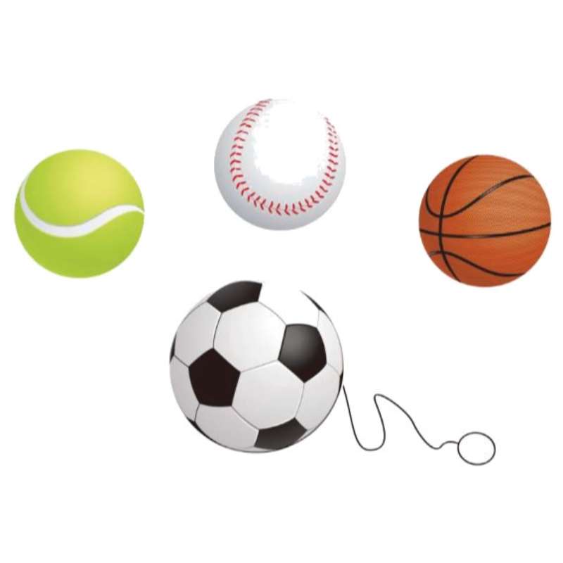 4 vaihtoehtoa: jalkapallo, koripallo, pesäpallo tai tennispallo.