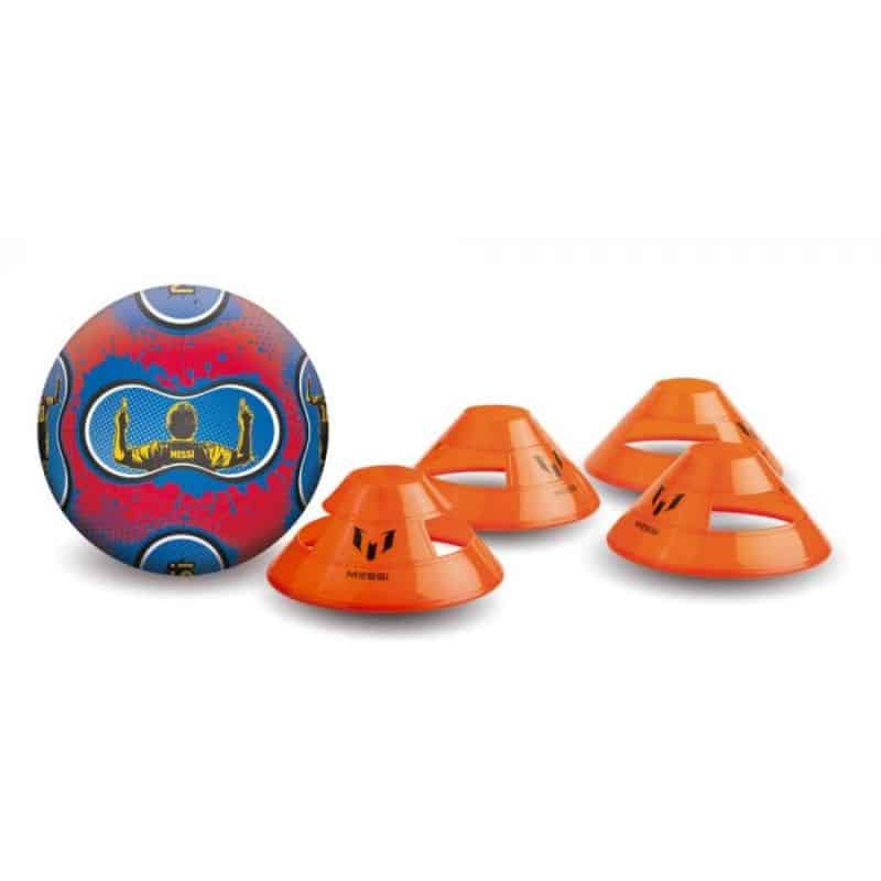 Kesäsetti jalkapallon harjoitteluun! Tuote sisältää Messi aiheisen, pehmeän kangasmaisen, vedenkestävän jalkapallon ja neljä temppuilukeilaa.