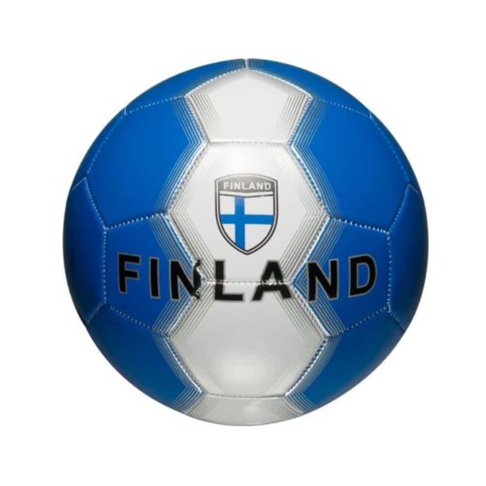 21 cm eli koko 5 jalkapallo. Pallo on laadukas Atom:n pallo ja se on varusteltu Suomen väreillä ja lipulla sekä Finland tekstillä.