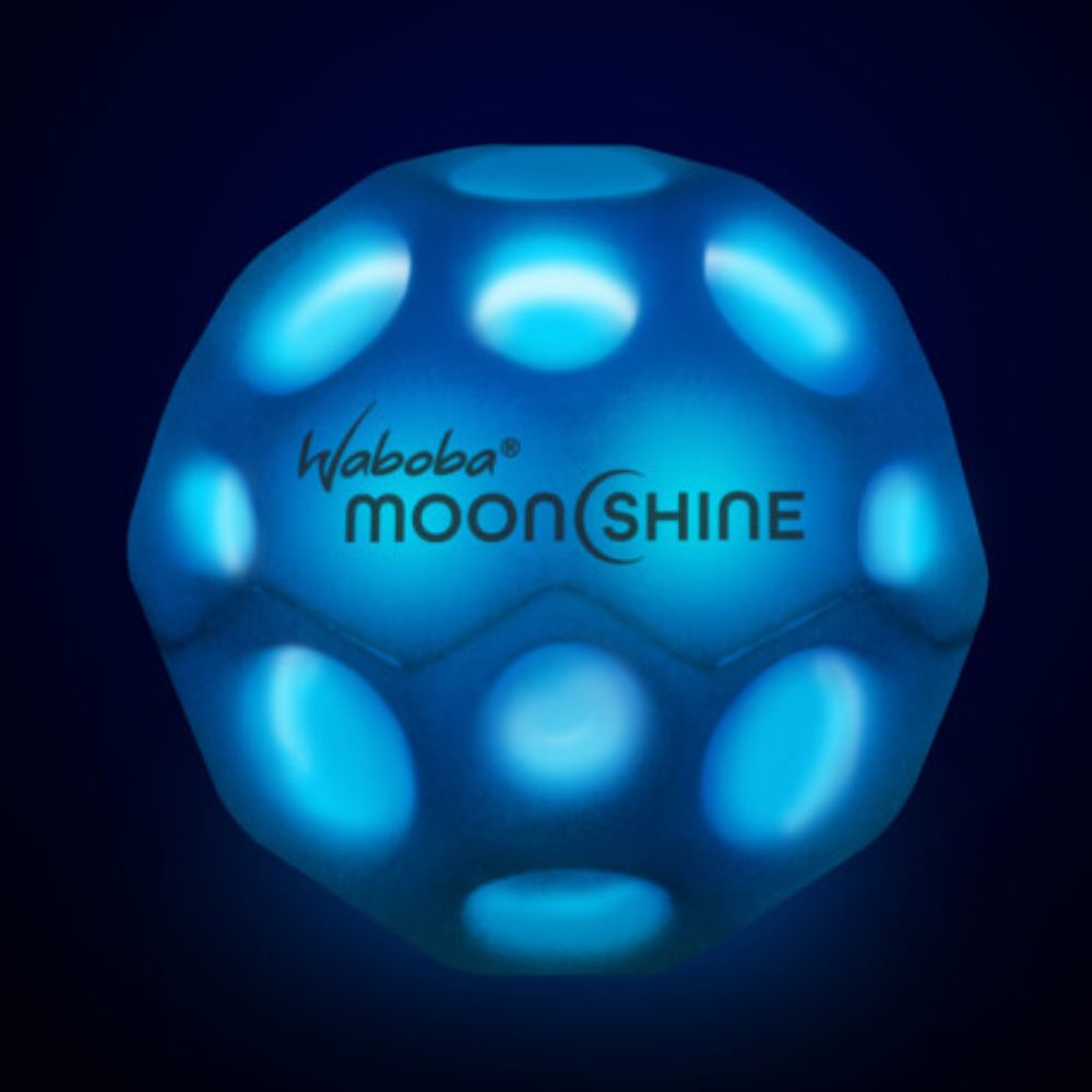 Hyvää yötä auringonpaiste, hei kuun loiste! Waboba Moonshine pallon kanssa on aina täysikuu! Pallossa on valkoinen, välkkyvä valo, joka aktivoituu pompusta ja palaa 7 sekuntia. Pallo on erittäin pomppaava.