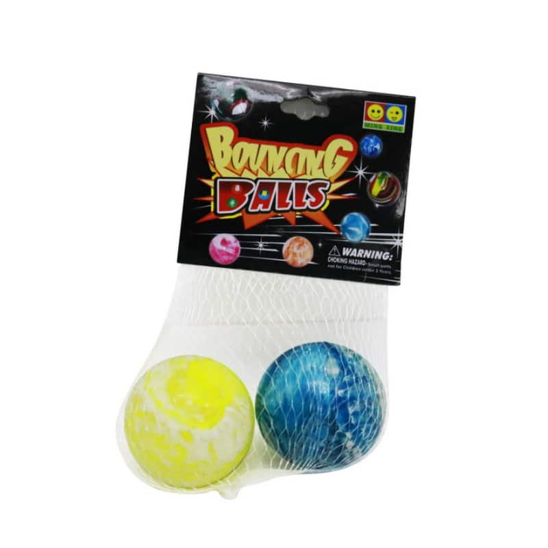 Hauskat marmorikuvioidut superpallot pomppiviin leikkeihin. Pussissa on kaksi kappaletta 44 mm :n halkaisijaltaan olevaa superpalloa verkkopussissa.