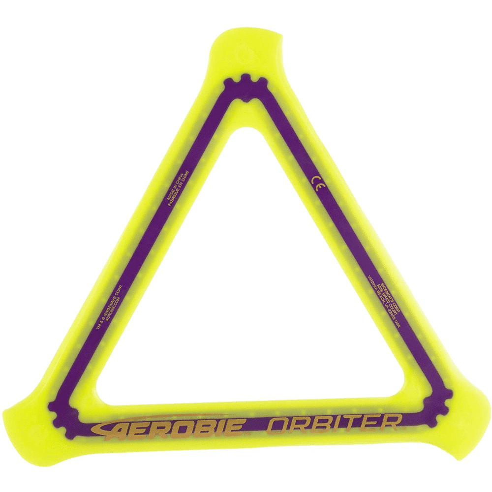 - Aerobie Orbiter Boomerang tarjoaa tämän maailman suorituskyvyn! Tämä bumerangilevy kulkee jopa 27 metriä ennen kuin se palaa luoksesi. Pehmeät reunat ja kolmion muoto tarjoavat turvallisen otteen, joten sitä on helpompi heittää ja kiinni. Avoin keskipiste antaa jokaiselle pelaajalle mahdollisuuden muokata heitto- ja tarttumistyyliään – tartu reunaan kädelläsi tai käytä keskustaa sen kiinnittämiseen kädelläsi tai jalallasi. Luo omat liikkeesi Aerobie-lentolevyillä!