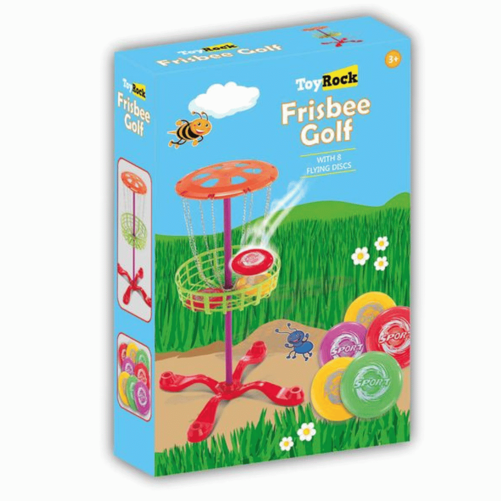 Frisbeegolf on hauska peli, jossa on tarkoitus heittää frisbee maalikoriin. Pakkaus sisältää maalikoritelineen ja kahdeksan frisbeetä. Ikäsuositus: yli 5-vuotiaille.