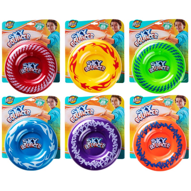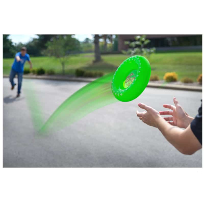 Pehmeä frisbee pomppiviin pihaleikkeihin. Heitä frisbee maahan ja se pystyy ponnahtamaan maasta peräti 7,5 metrin päähän. Frisbeen pomputtelu on hauskaa tekemistä käsäpäivinä yhdessä kaverin kanssa.