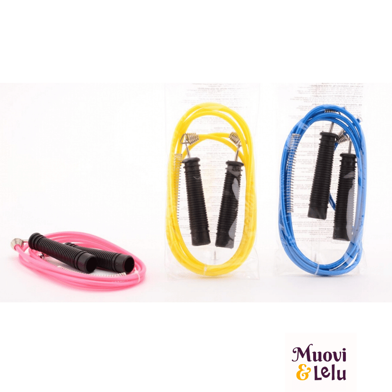 Sininen, vaaleanpunainen tai keltainen 2,2 metriä pitkä muovinen hyppynaru sopii lapsille kannustaen heitä liikkumaan hauskalla tavalla.