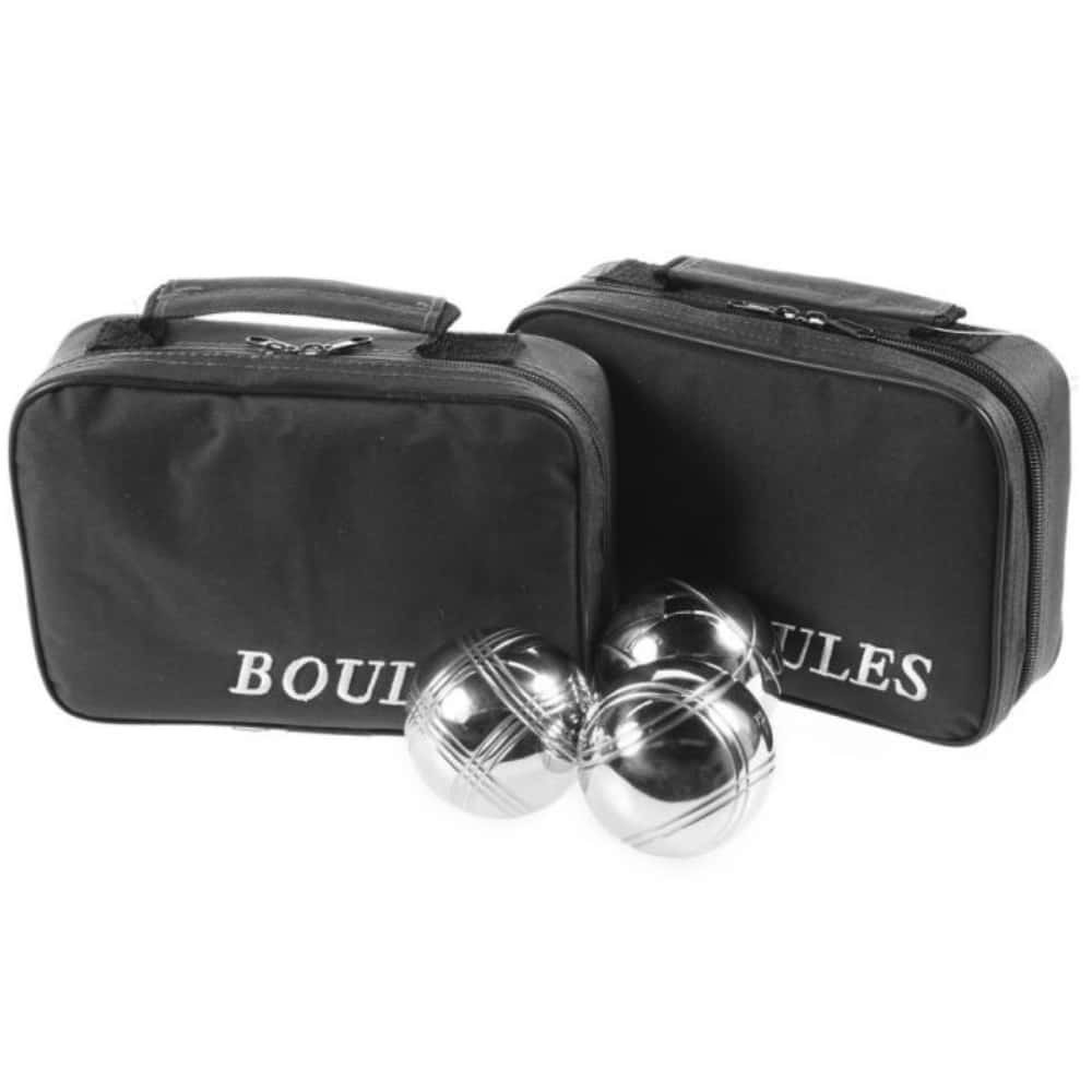 Petangue pihapeli kantokassissa sisältää 6 metallista palloa (3 paria) sekä pienen puupallon. Pallon halk. 73mm, 720g, puisen pienen pallon halk. 29mm.