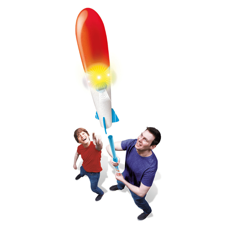 Laita raketti lähtövalmiiksi ja aloita lähtölaskenta 3..2..1 Valaistu raketti sinkoutuu jopa 15 metrin korkeuteen mahtavasti viheltäen! Hämärässä raketin lennätys on extrajännää! Raketin pituus 92 cm. Sisältää paristot 3 x LR54, ei vaihdettavissa. Ikäsuositus 6+ vuotta.