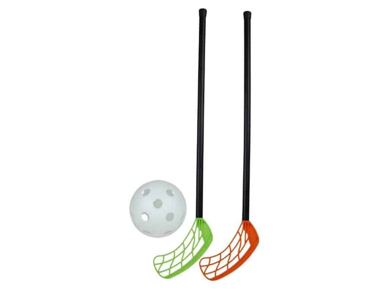 Sisäjääkiekkosetti Rookie nuoremmille pelaajille. Sarjassa: 2 sisäkiekkomailaa (kahvan pituus 45 cm) ja sisäpallo