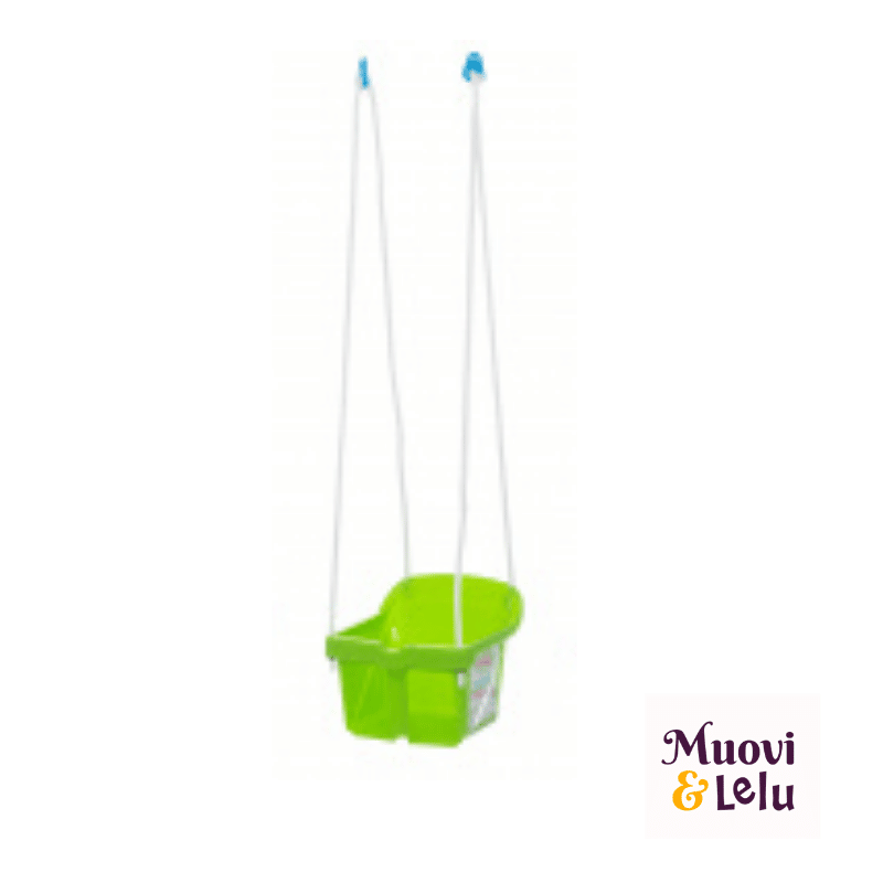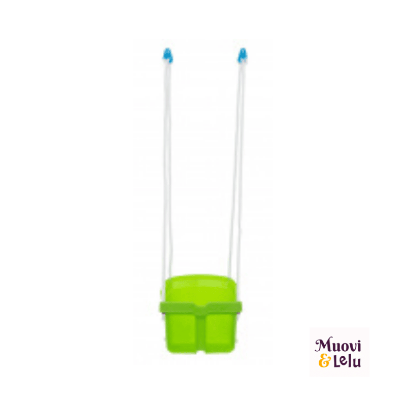 - Muovinen vaaleanvihreä lastenkeinu sisä- ja ulkokäyttöön, jossa on mukana ripustusköysi.