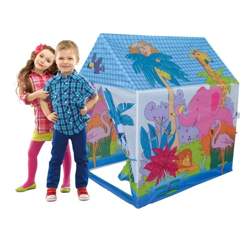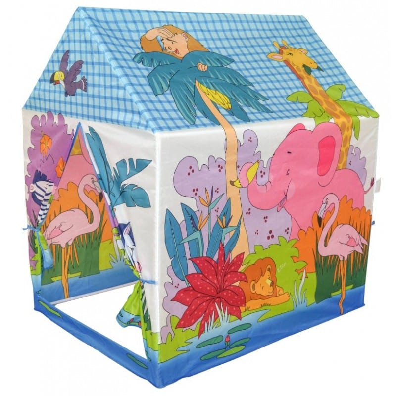 Hauskalla viidakkoeläin teltalla voit leikkiä sisällä ja ulkona. Teltan oviaukko on rullattava, joka helpottaa leikkejä.