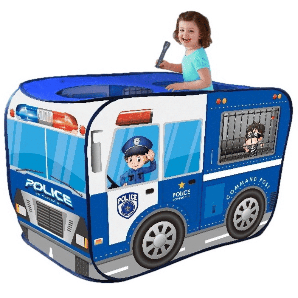 Teltta poliisiauto Pop Up on upea uutuus leikkeihin sisälle tai ulos. Telttaa ei tarvitse koota, vaan se menee muotoonsa itsestään sekunnissa. Poliisiauton muotoinen teltta on pakattu kätevään säilytyspussiin, jossa sitä voi myös sälyttää. Teltan voi taitella mukana tulevaan säilytyspussiin leikkien jälkeen. Teltan katossa kaksi kurkistusaukkoa katolla. Kulku sisään on teltan takaosasta.