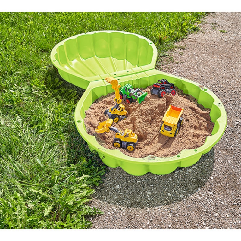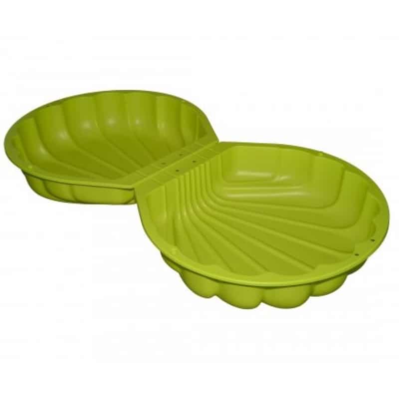 Kaksi kappaletta limen värisiä simpukankuoren mallisia hiekkalaatikko-vesialtaita. Simpukka-allasta voi käyttää hiekkalaatikkona, uima-altaana ja se sopii myös erinomaisesti koiranaltaaksi kovan muovin takia. Voit täyttää molemmat puolet hiekalla tai vedellä tai käyttää toista puolta altaan kantena.