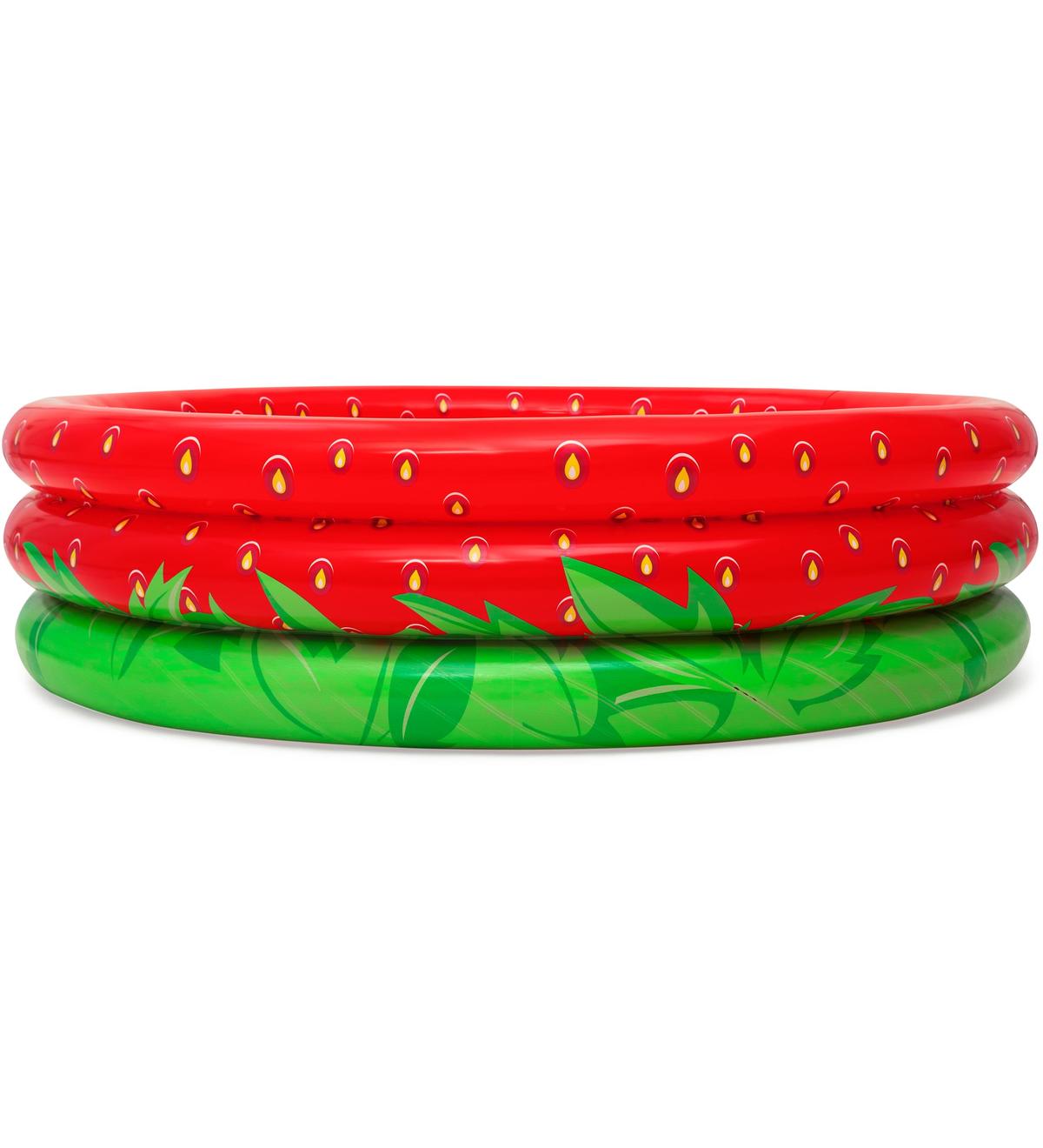 Pirteän punainen kahluuallas hohkaa kesän kirkkaissa väreissä. Kesän suosikkimarja mansikka on muuttunut hauskaksi uima-altaaksi. Kolmirenkaisen altaan koko on 160 x 38 cm ja sen tilavuus on 390 litraa. Pakkaus sisältää altaan ja paikkatarran. Mukavia kahluuhetkiä!