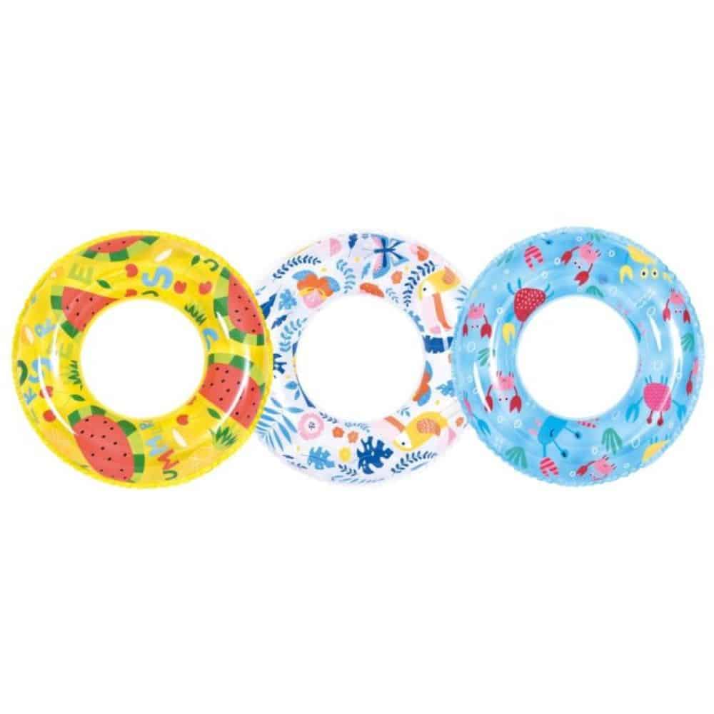 Värikäs uimarengas kesän vesileikkeihin. Renkaan halkaisija 60 cm. Käytettävä aikuisten valvonnassa. Ikäsuositus 5-10 vuotta.
