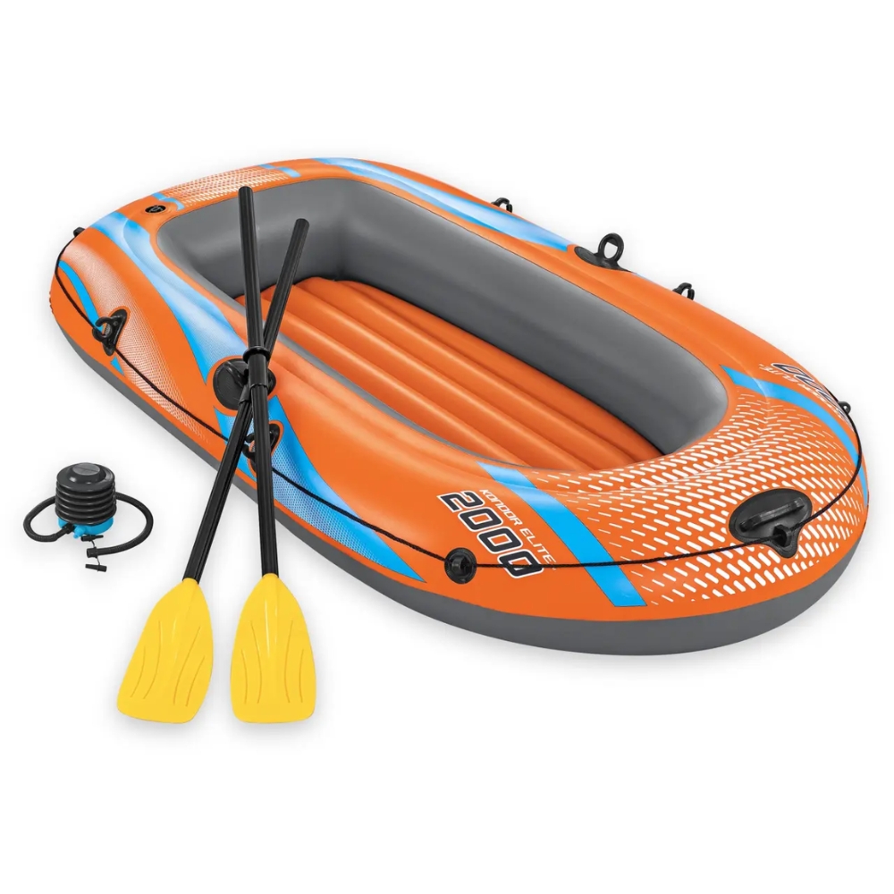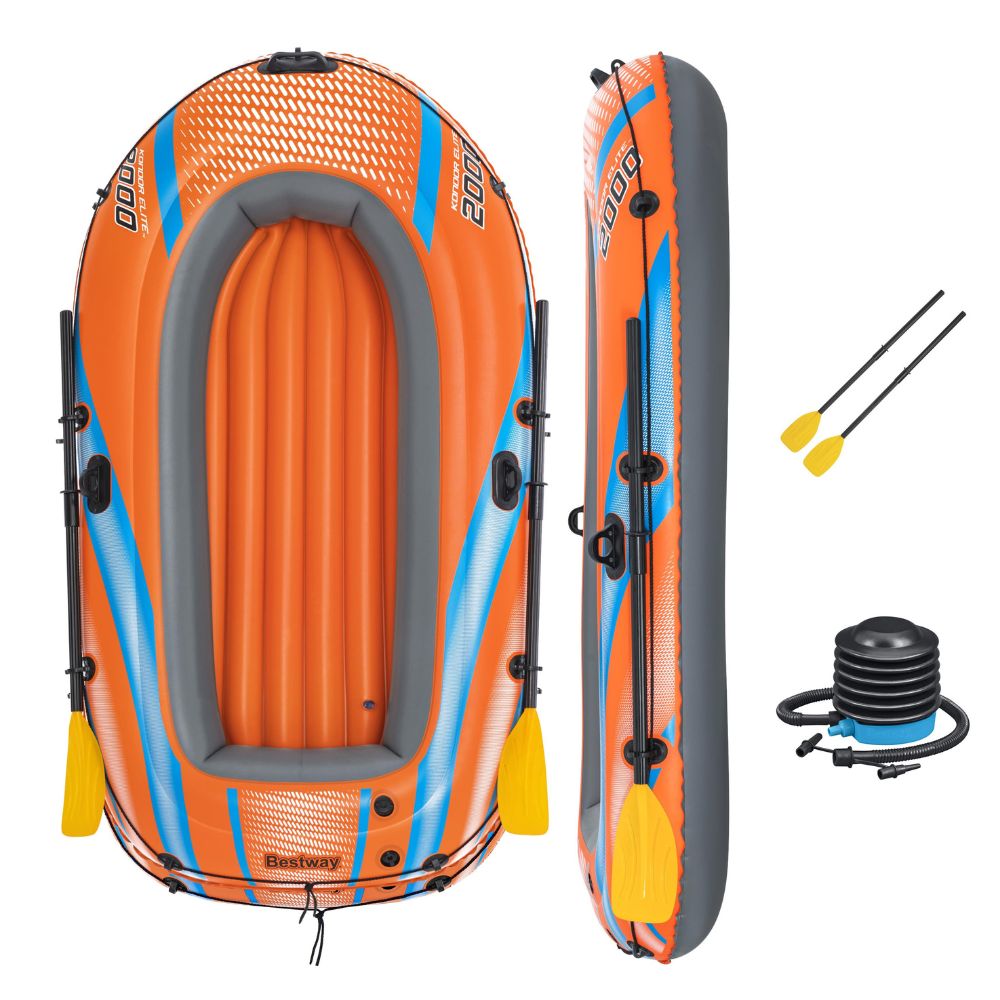 Kumiveneessä on kiva soudella aurinkoisena päivänä. Ilmatäytteinen pohja tuo ekstramukavuutta. Soveltuu yhdelle aikuiselle ja yhdelle lapselle (max. 120 kg). Mukana on airot, jalkapumppu ja paikkatarra.
