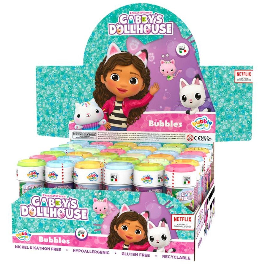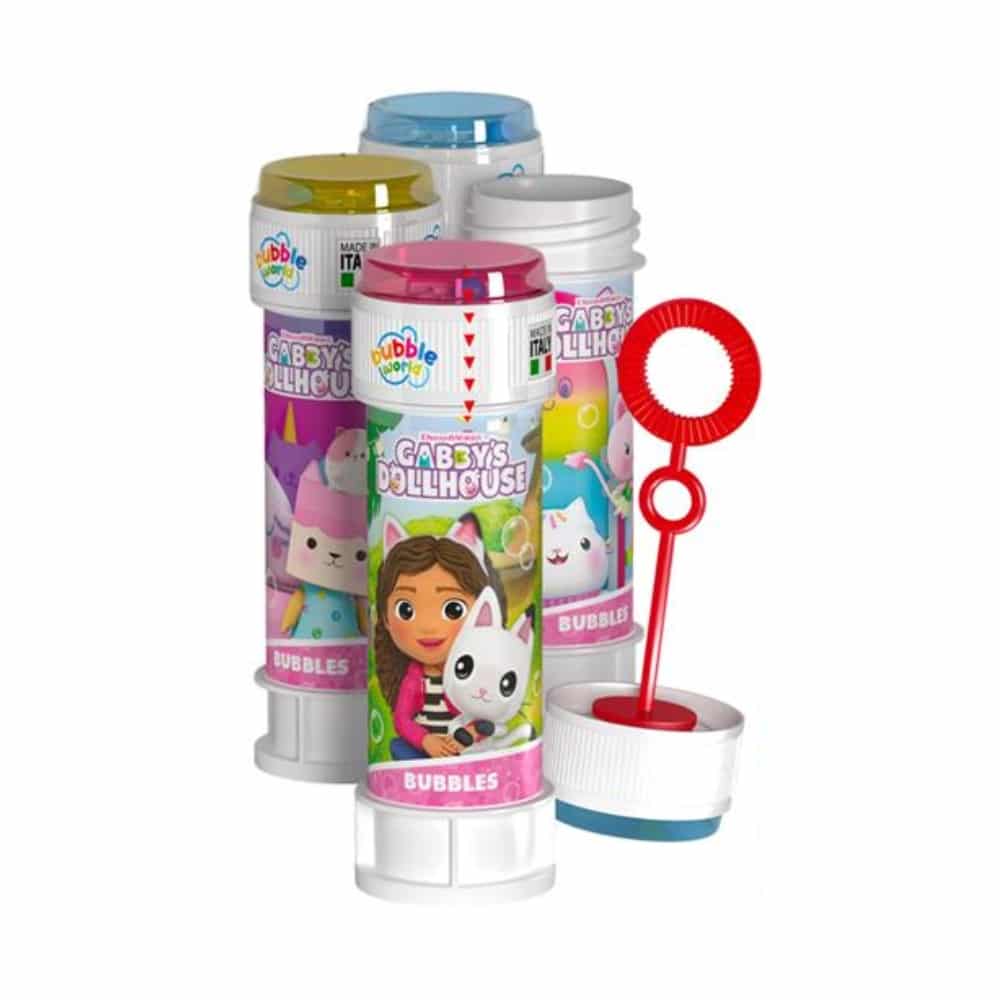 Saippuakuplapullo, jossa on Gabbyn nukkekoti -aiheinen kuvitus. Pullossa on 60 ml kuplanestettä.