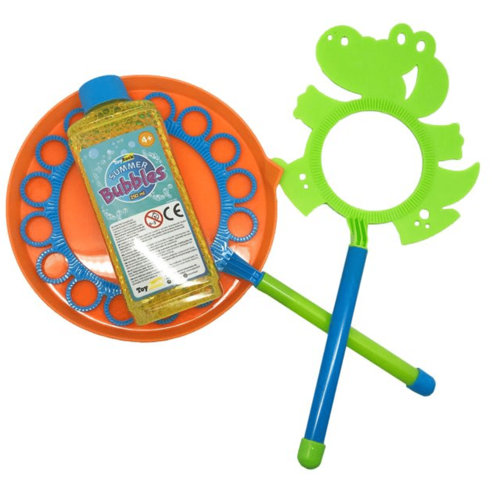 Saippuakupla jättikuplissetti eläin erilaisia kuuluvat kesään. Upota iso saippuakuplasauva vadissa olevaan kuplisnesteeseen, liikuta sauvaa ilmassa ja saat aikaiseksi pitkulaisia kuplia. Pakkaus sisältää kaksi kuplissauvaa, vadin ja 250 ml kuplisnestettä. Ikäsuositus: 4+ vuotta.