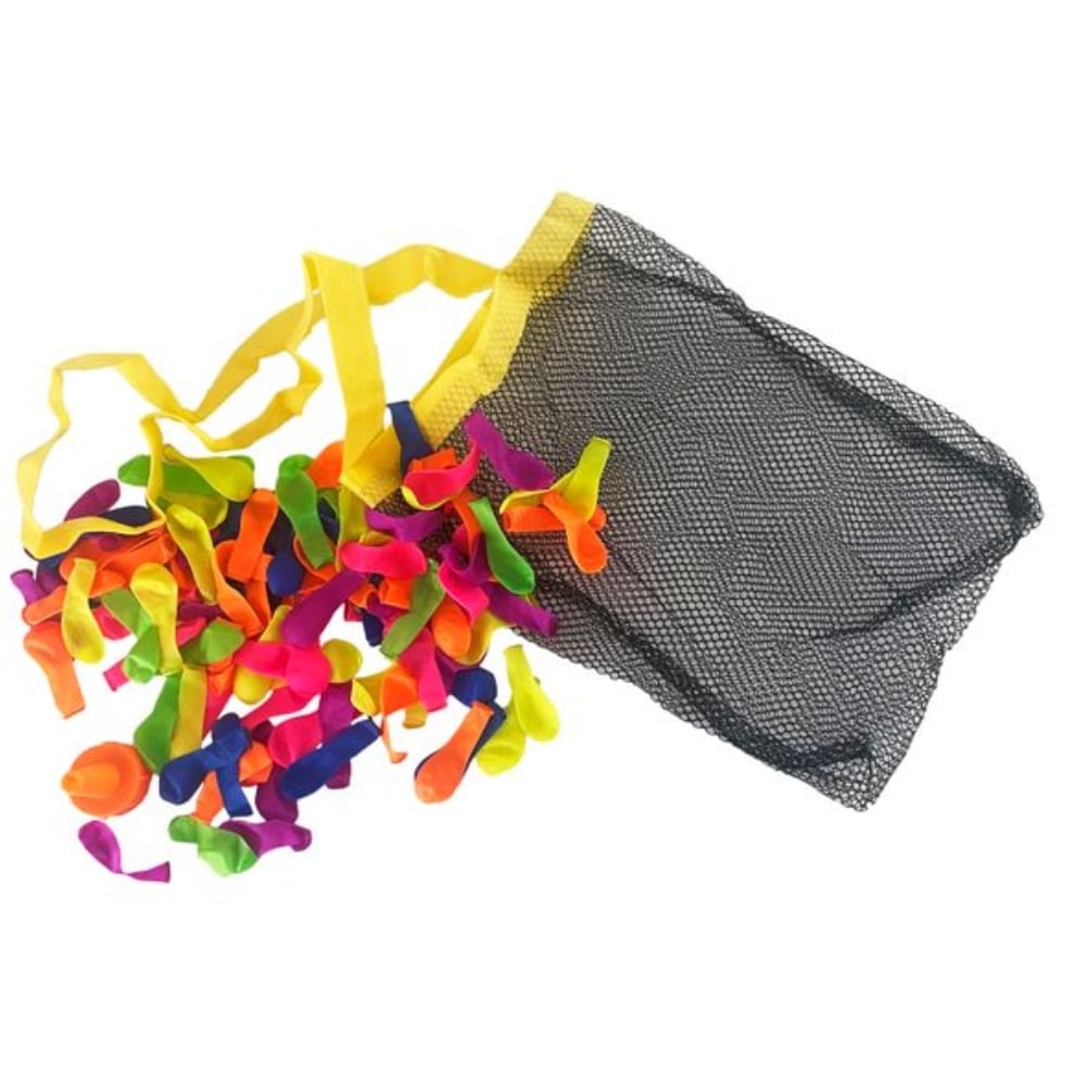 Vesi-ilmapallo 100 kpl & kassi. Vesisota on entistä hauskempaa, kun vesi-ilmapallot kulkevat kätevästi mukanasi! Täytä vain vesi-ilmapallot suuttimen avulla ja pakkaa pallot kantokassiin niin vauhdikas vesileikki voi alkaa. Pakkaus sisältää kantokassin, suuttimen sekä 100 vesi-ilmapalloa. Ikäsuositus: 8+ vuotta.