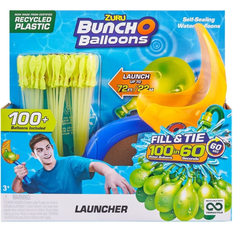 Täytä ja sido 100 vesi-ilmapalloa alle 60 sekunnissa ja kesän hauskimmat vesileikit voi alkaa! O-rengasinnovaatiolla ja Rapid Fill -pikatäytöllä voit sanoa hyvästit yksittäisten ilmapallon täyttöhässäkälle ja alkaa nauttimaan loputtomasta hauskanpidosta! Pakkaus sisältää Bunch O Balloons -heittimen ja kolme itsestään sitoutuvaa vesi-ilmapallonippua (noin 100 vesi-ilmapalloa).