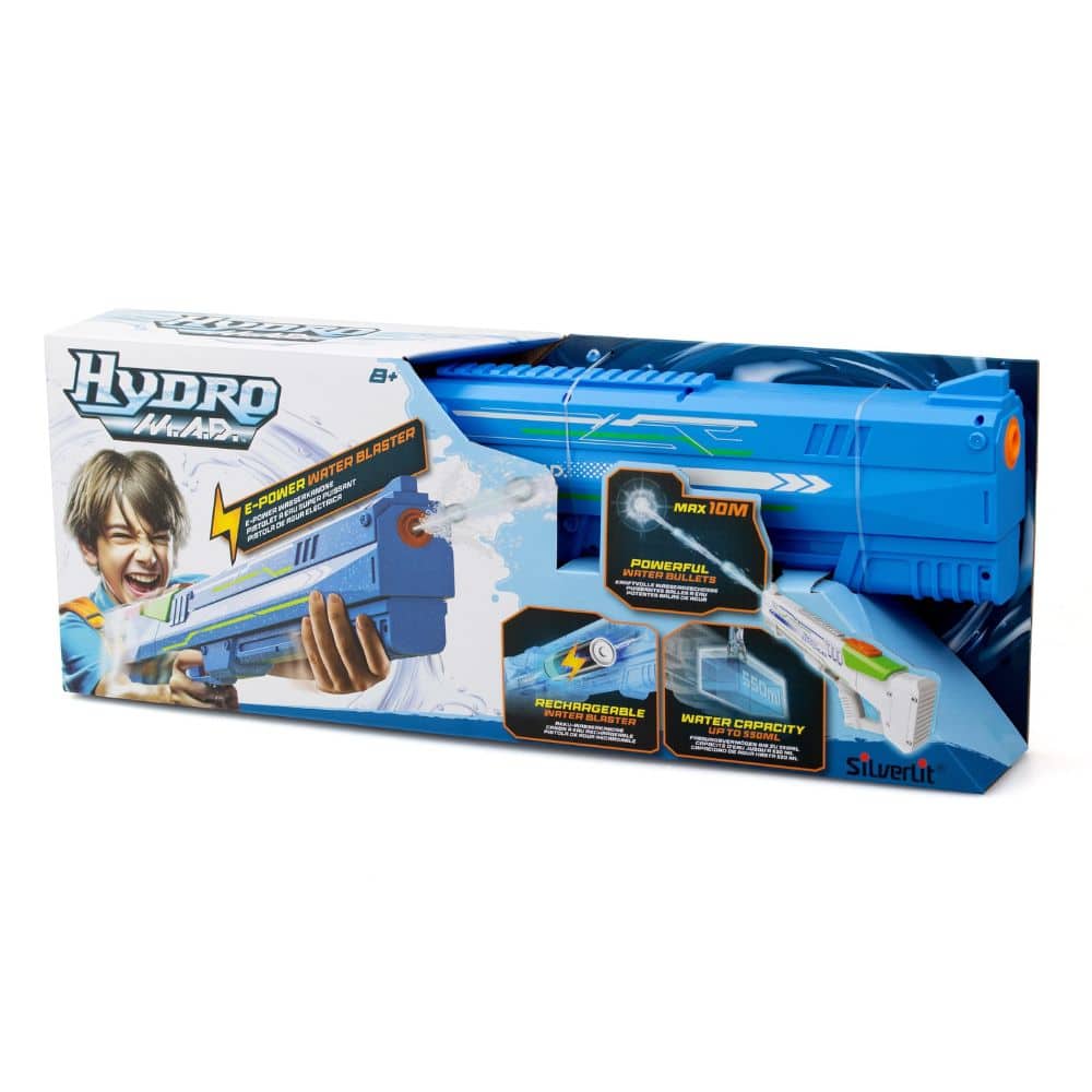 Hydro MAD Splastz 51cm elektroninen vesipyssy, jolla pystyy ampumaan pitkiäkin matkoja. Ei pientä vesisuihkua, vaan todellisia vesiluoteja. Ampumisetäisyys noin 8-10 metriä. Ladattavalla vesipyssyllä voit ampua jopa 20 min. ja sen vesisäiliö on 550 ml. USB-lataus. Ikäsuositus 8+