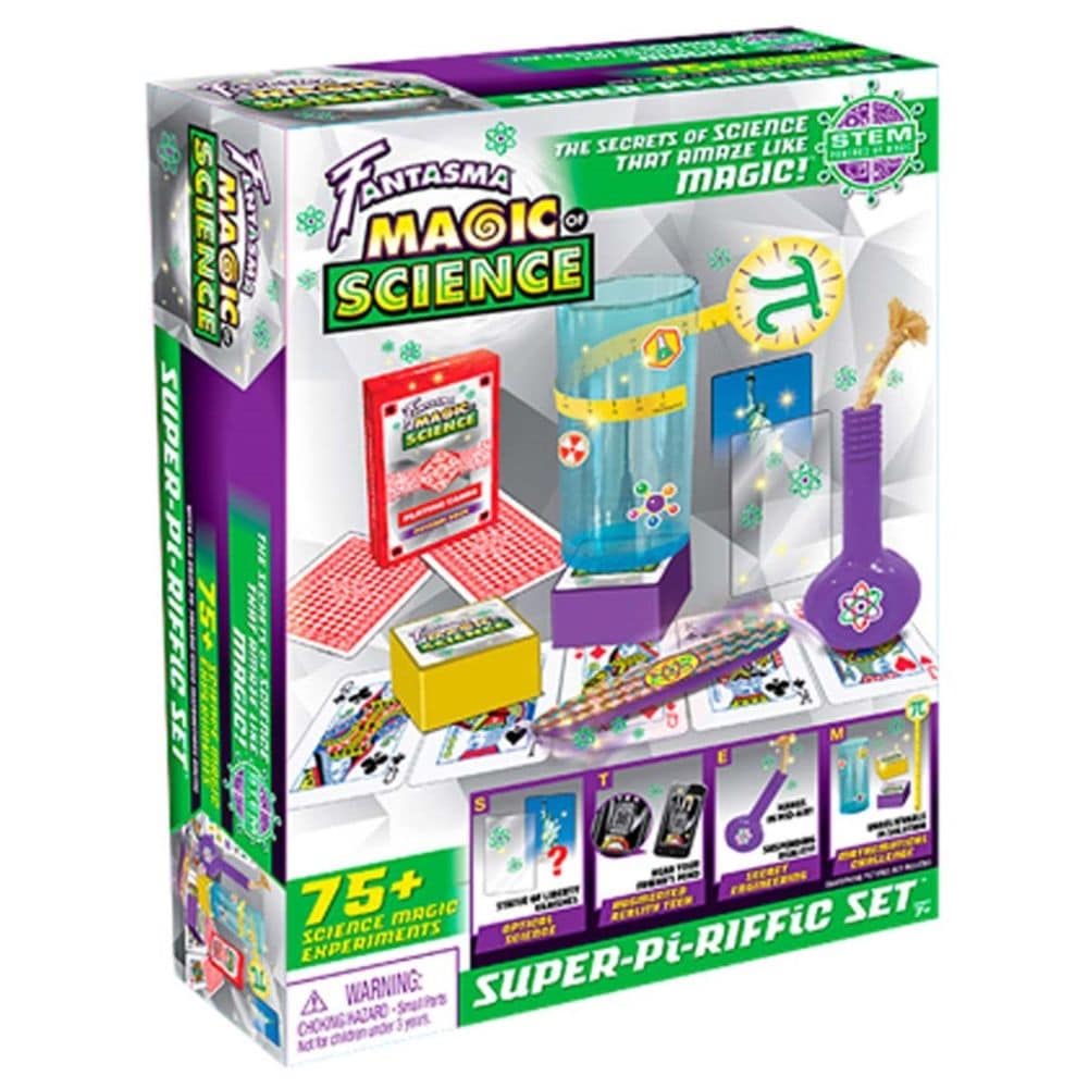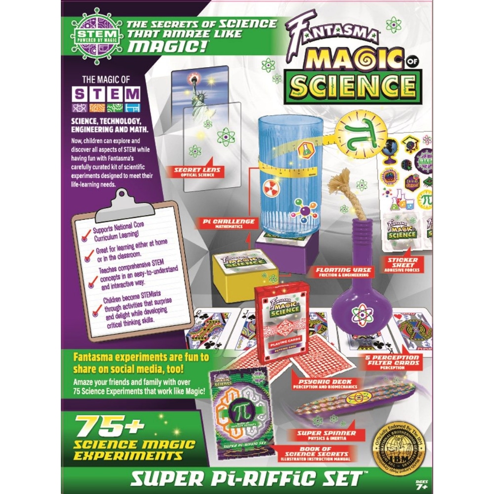 Fantasman tieteen taika hämmästyttää takuulla mahtavilla tiedekokeilla. Fantasma Super-Pi-riffic Set-tiedesetin avulla voit tehdä jopa yli 75 tieteellistä koetta, jotka tukevat kansallista STEM-aineiden perusopetusohjelmaa. STEM-järjestelmään perustuva leikkisetti (tiede, teknologia, tekniikka ja matematiikka) opettaa lapsille tieteeseen liittyä asioita hauskalla tavalla.