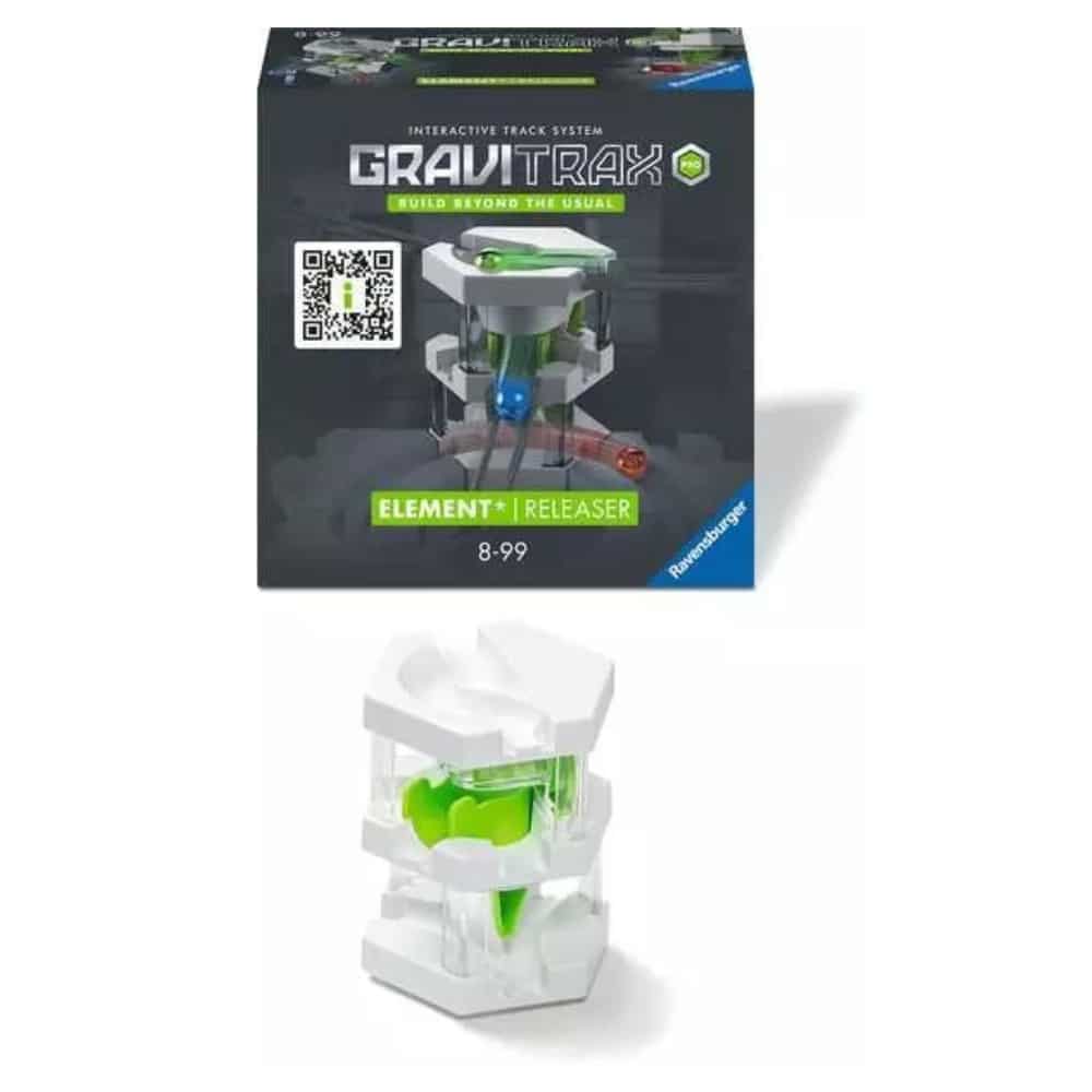Gravitrax Pro lisäosa Element Releaser. Vielä enemmän toimintaa GraviTrax PRO -malliston Element Releaserilla. Ensimmäinen lisäosa, joka yhdistää kolme tasoa ja kuulat vaikuttavat toisiinsa. Tämä lisäosa luo riippuvuuksia kolmen tason yli.