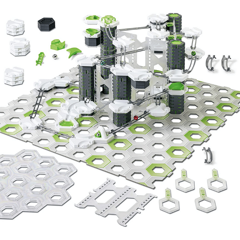 GraviTrax PRO Starter set nostaa GraviTrax-ratasi korkeuksiin. Aloitussetissä on 153 osaa, joiden avulla rakennat korkeuseroja rataasi ja saat aikaan vauhdikasta toimintaa. Rakenna seiniä, pylväitä ja parvekkeita, jotka voit yhdistää toisiinsa. Voit luoda kolmiuloitteisia rakenteita. Osat ovat yhdistettävissä saumattomasti muihin GraviTrax -setteihin mahtavien dynaamisten kuularatojen luomiseksi. Kiinnitä pylväät läpinäkyviin seiniin niissä olevien kiinnikkeiden avulla ja luo monimutkaisia ratoja kuulillesi. Nosta ratasi ilmaan parvekkeita käyttämällä. GraviTrax PRO Starter Setin voi yhdistää muihin GraviTrax -tuotteisiin.