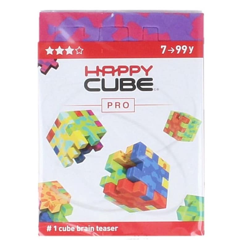 Pulmakuutiot ovat hauskaa aivojumppaa kaikenikäisille. Happy Cube pulmakuutio, pro on hauska lasten ja aikuisten pulmapeli, jota voi rakentaa joko kaksi- tai kolmiulotteisesti. Ensimmäinen haasteesi on irrottaa palat raamista ja saada ne takaisin raamiin. Miten päin palat loksahtelevat paikalleen? Kuudesta palasta saa rakennettua täydellisen kuution kiinnittämällä osat toisiinsa oikein. Onnistutko?