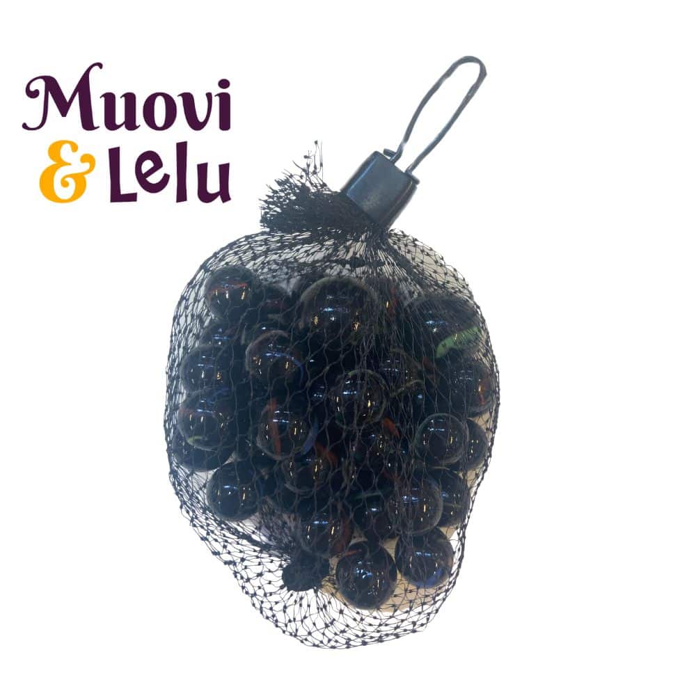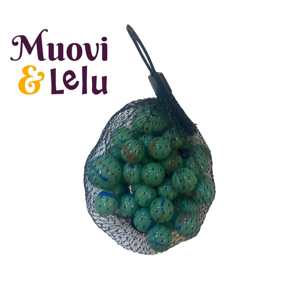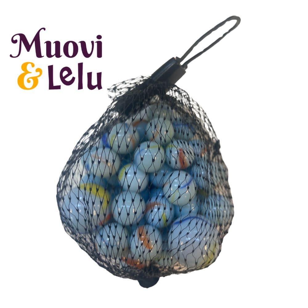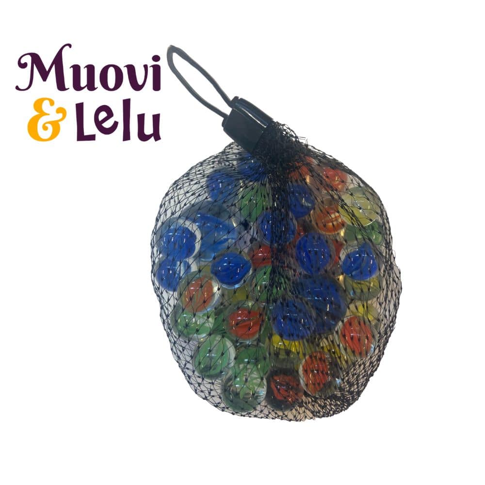 Kuulia voi käyttää monissa peleissä. Pakkauksessa on erivärisiä ja eri kokoisia marmorikuulia jotka ovat verkkopussissa.