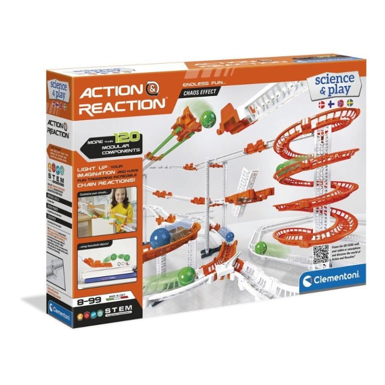 Tutki painovoimaa ja syyn ja seurauksen suhdetta mielenkiintoisen ja opettavan Action & Reaction -leikkisetin avulla. Rakenna rata, laske kuulat liikkeelle ja seuraa mitä kaikkea niiden matkan varrella tapahtuu.