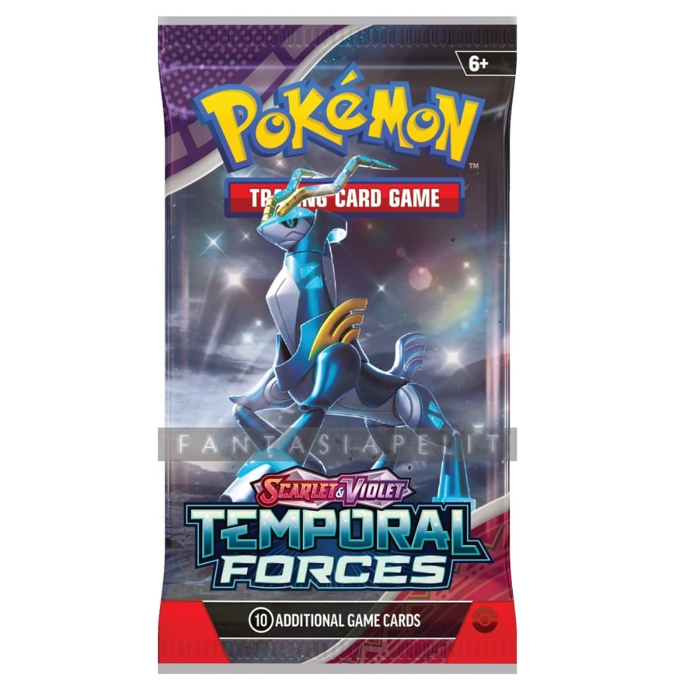 Pokemon TCG Scarlet & Violet 5 Temporal Forces Booster Pack keräilykorttipelien valikoimasta tarjoaa tehostepaketin Scarlet & Violet -sarjasta. Jokainen tehostuspaketti sisältää 10 yksittäistä korttia.