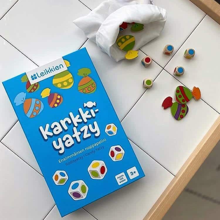 Leikkien Karkkiyatzy on makea noppapeli puisilla karkeilla ja värinopilla. Peli sopii loistavasti lapsen ensimmäiseksi noppapeliksi. Peli-idea mukailee klassista Yatzya, mutta säännöt ovat yksinkertaisemmat, pienelle lapselle sopivat. Pelivälineet ovat puiset värinopat ja muotoonleikatut karkit.