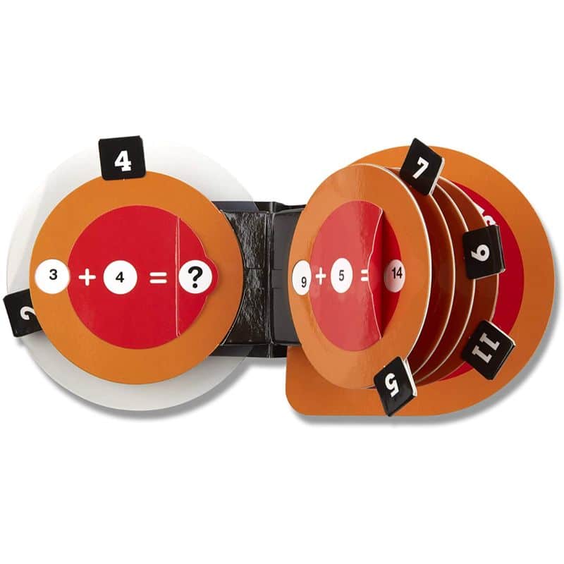 Opettele yhteenlaskua hauskalla tavalla milloin ja missä tahansa tämän pienen kirjan avulla! Taskukokoisessa kirjassa on 14 sivua ja se on helppo kantaa mukana. Kirjassa on hauska pyöreä muoto, se on kestävä, sillä siinä on kovat sivut. Käännä kirjassa olevaa “rattia” saadaksesi matemaattisen laskutehtävän, ratkaise lasku ja nosta läppä tarkistaaksesi vastaus. Kirjassa on myös englanniksi hauskoja faktoja numeroista ja matematiikasta.