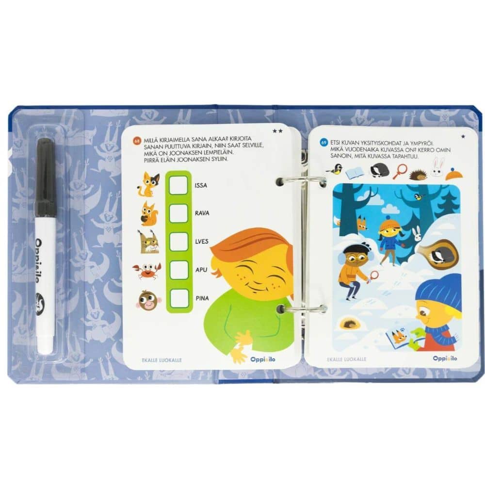 Oppi&ilo Ekalle luokalle -puuhakorttikirja on monipuolinen taitopaketti koulutietään aloittavalle! Numeroita, kirjaimia, päättelytehtäviä, otunnetaitoja…