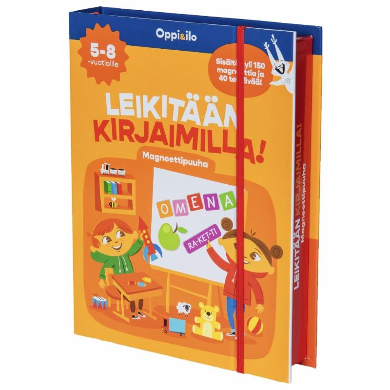 Oppi & ilo Magneettipuuha Leikitään kirjaimilla -magneettikirja innostaa lasta opettelemaan kirjaimia, äänteitä ja pienten sanojen kirjoittamista. Tehtävissä etsitään sanoille alkukirjaimia, seurataan kirjainpolkuja ja tehdään jo pieniä sanaristikoitakin. Magneettiset puuhatehtävät houkuttelevat lasta ja ilo tulee oivaltamisesta. Tehtävät voi tehdä yhä uudelleen ja iloa riittää pitkäksi aikaa!