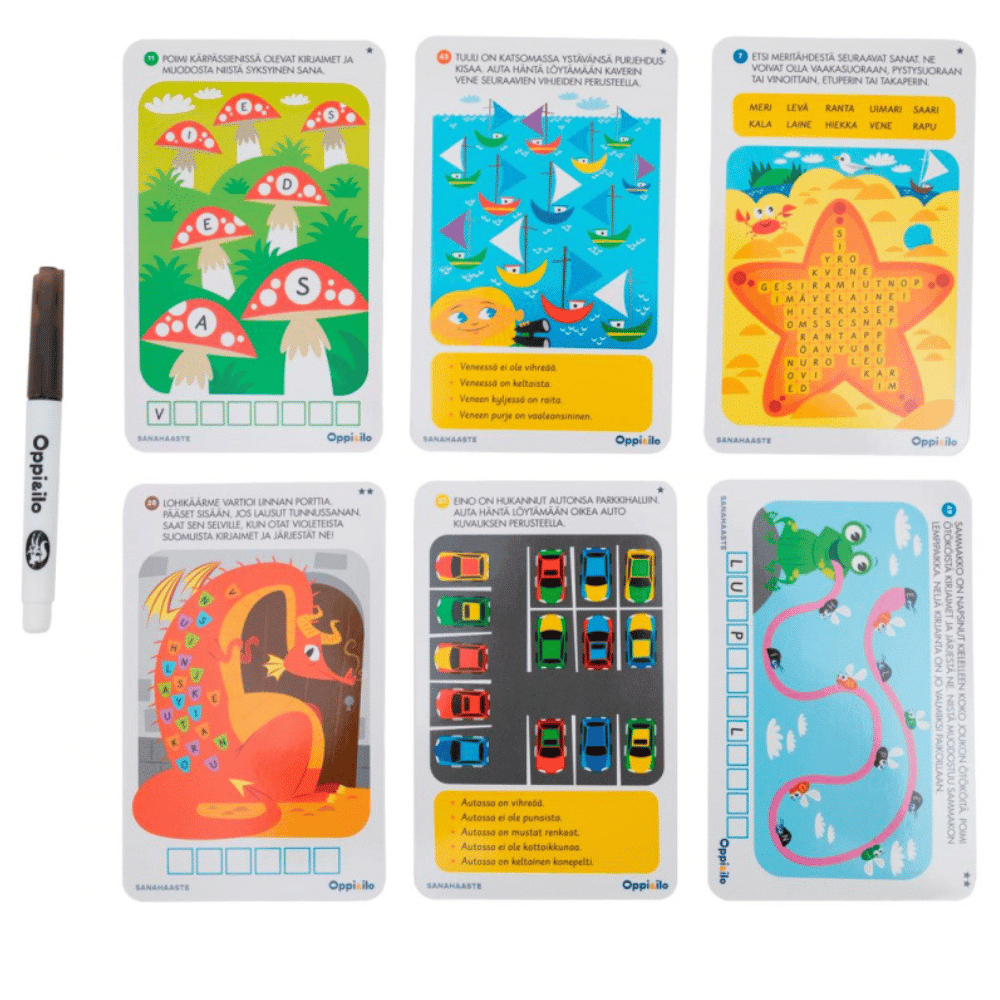 Oppi&ilo Sanahaaste -puuhakortit sisältää mm. kinkkisiä salakoodeja ja innostavia ristikoita! Koululaiselle sopiva puuhapakka tempaa mukaansa, samalla sanavarasto ja kielitaito saavat pureskeltavaa.